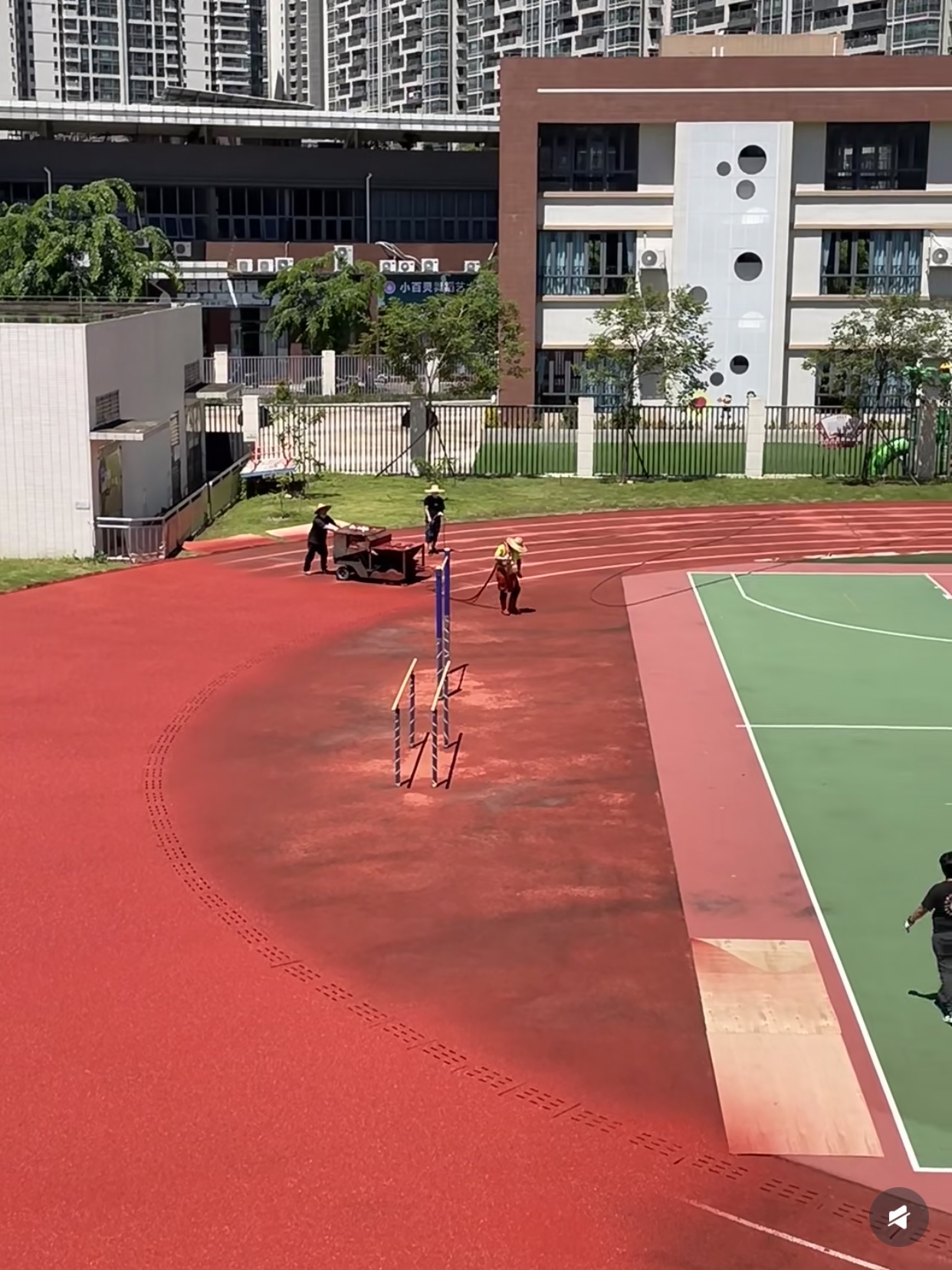 轻度损坏:主要表现为跑道表面出现轻微的划痕、小面积的磨损,可能是由于运动员的钉鞋摩擦或者日常的正常使用造成的。这种情况下,跑道的整体结构和性能并没有受到太大影响,只是外观上不太美观。